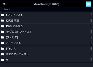 ※トラック毎のアーティスト(楽曲別アーティスト)は MinimServer では「全てのアーティスト」と表示されます。