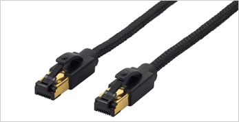 単線導体を使用し、エイリアンクロストーク(ANEXT)を防ぐ二重シールド構造を採用したプレミアムイーサネットケーブルC1AEを付属しています。