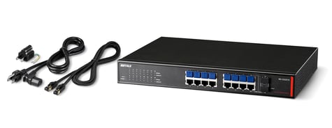 10/100/1000M 16ポート※(全ポートAuto-MDIX機能搭載) +SFP2ポート(コンボポート) 出荷時は下段8ポートのみ有効(設定変更可能) |
